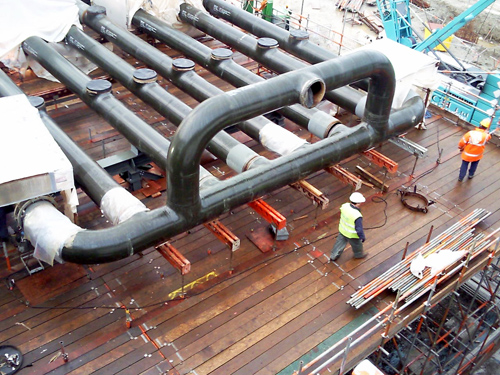 Costruzione fascio tubiero composto da n.4 tubi DN 30” e da n.2 tubi DN 12” completa di 250.000 Kg. di carpenterie portanti con controllo di qualità per attraversamento in microtunnel